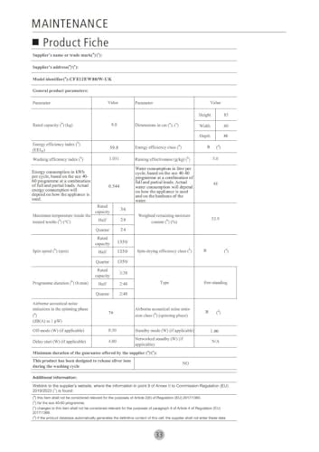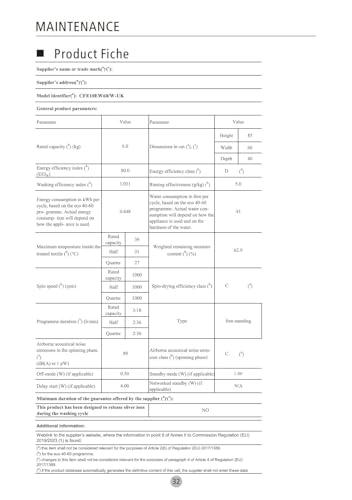 COMFEE’ Freestanding Washing Machine,10KG Load,A-10% Class,Steam Care,BLDC Motor,Woolmark,Touch Panel,White-CFP03EW100W-UK