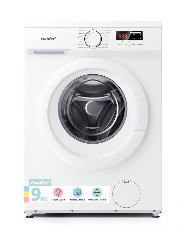 COMFEE’ Freestanding Washing Machine,9KG Load,1400RPM,Steam Wash,Quick Wash,BLDC Durable Inverter Motor,White-CFE12EW90/W