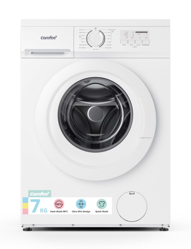 Comfee‘ Freestanding Washing Machine,7KG Load,Heat Wash 90℃,Ultra Slim 400mm,Quick Wash,15 Washing Programs with 1200RPM,White-CFE10EW70/W