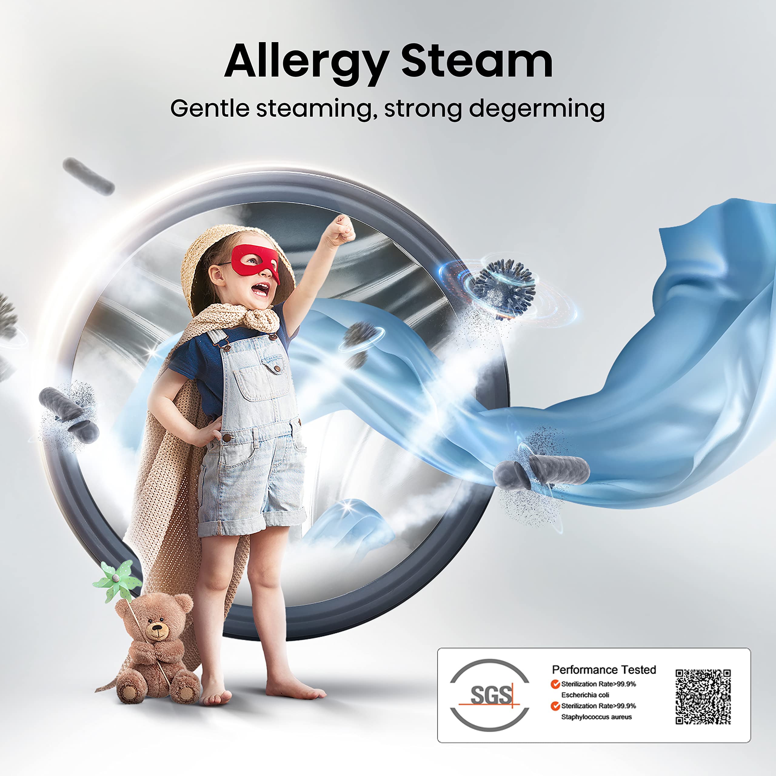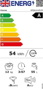 Hisense WFQA1214EVJM Freestanding 12 KG Front Load Washing Durable Inverter Machine Steam Wash Quick Wash 15 Washing Programs 1400 RPM White Energy Rating A