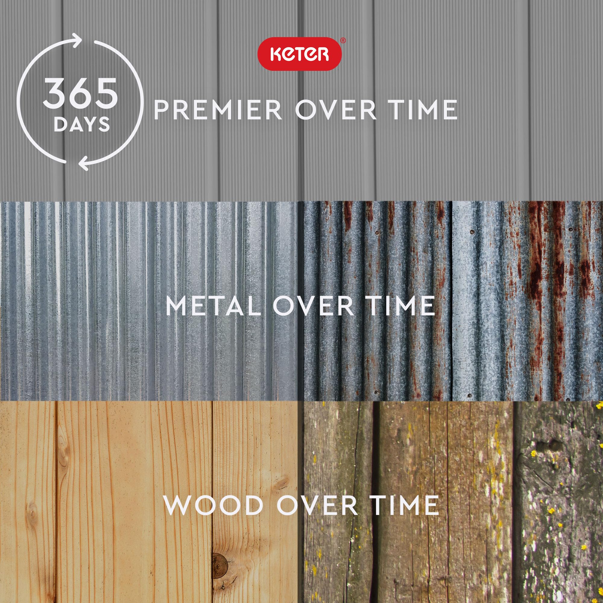 Keter Premier Shed Outdoor Resin Storage Shed with Shelf Brackets for Patio Furniture, Pool & Bike Accessories, Grey and Black 1.4m x 1.7m